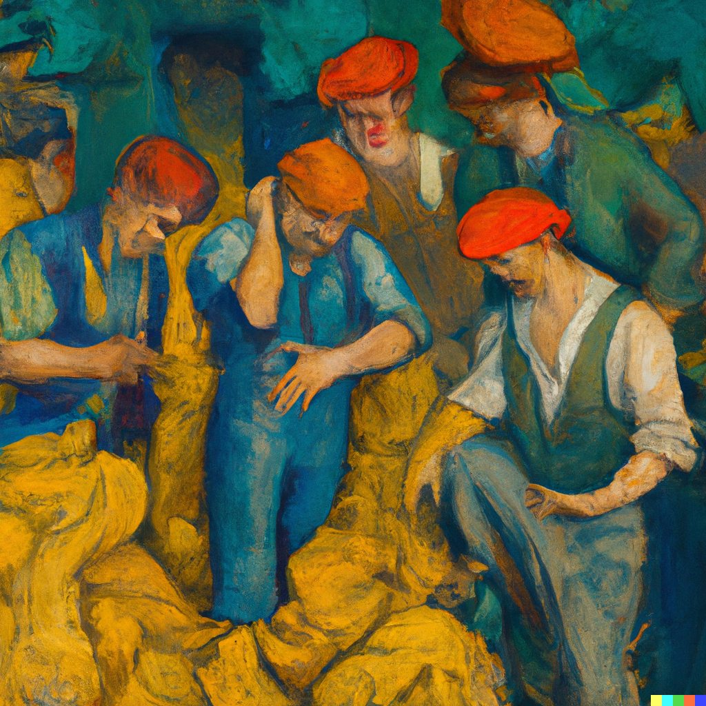 ..und Johann wusste, dass er viele Arbeiter brauchte, um alle Trauben zu pflücken. Also ging er frühmorgens auf den Marktplatz, um nach Arbeitern zu suchen. Dort traf er einige Leute, die nach Arbeit suchten, und bot ihnen 50 Euro an, wenn sie ihm helfen würden, die Weintrauben zu pflücken.