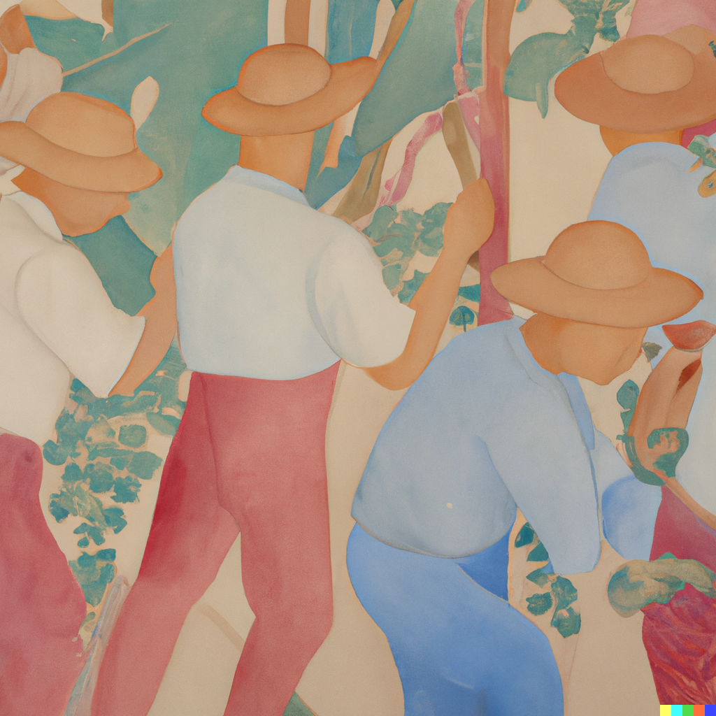 ..und Johann wusste, dass er viele Arbeiter brauchte, um alle Trauben zu pflücken. Also ging er frühmorgens auf den Marktplatz, um nach Arbeitern zu suchen. Dort traf er einige Leute, die nach Arbeit suchten, und bot ihnen 50 Euro an, wenn sie ihm helfen würden, die Weintrauben zu pflücken.